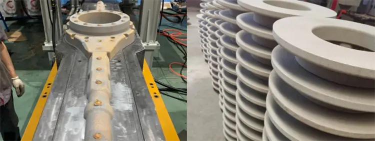 అద్భుతమైన నిలువు ఇసుక బ్లాస్టింగ్. అచ్చు యొక్క క్షితిజ సమాంతర విడిపోవడం |