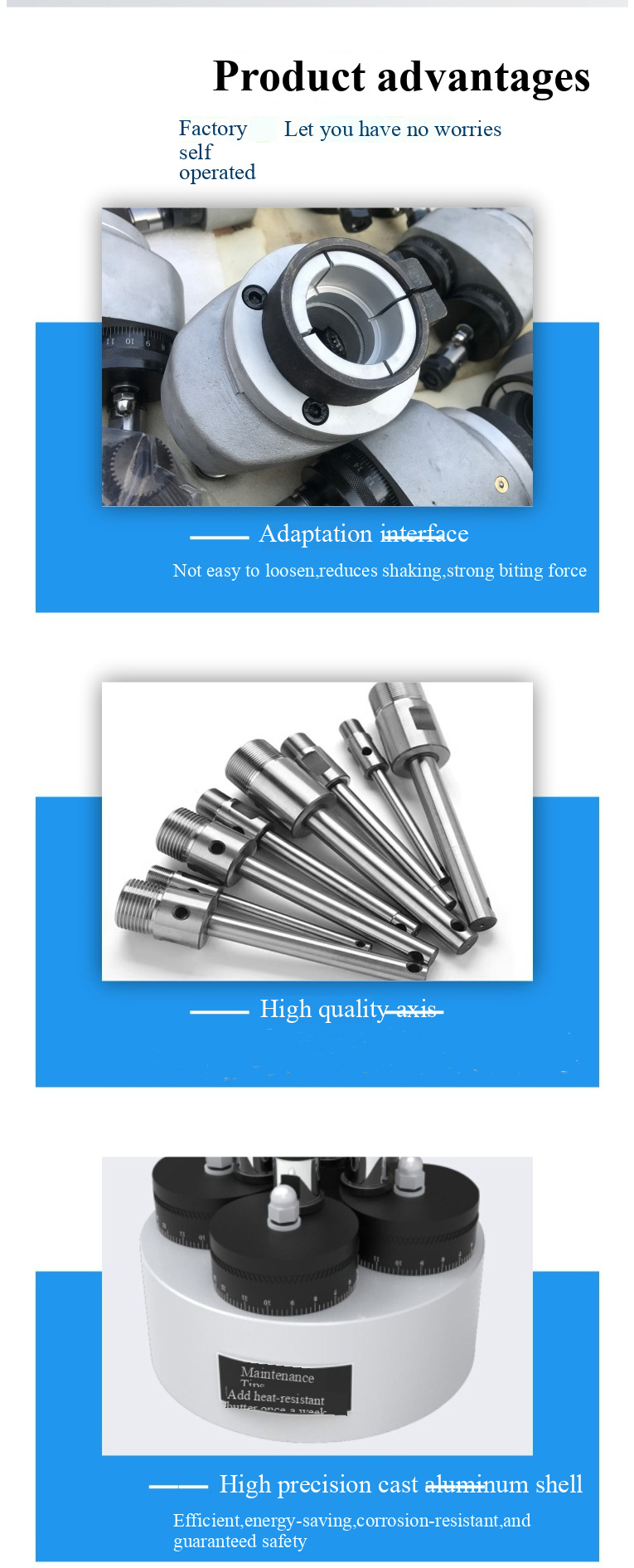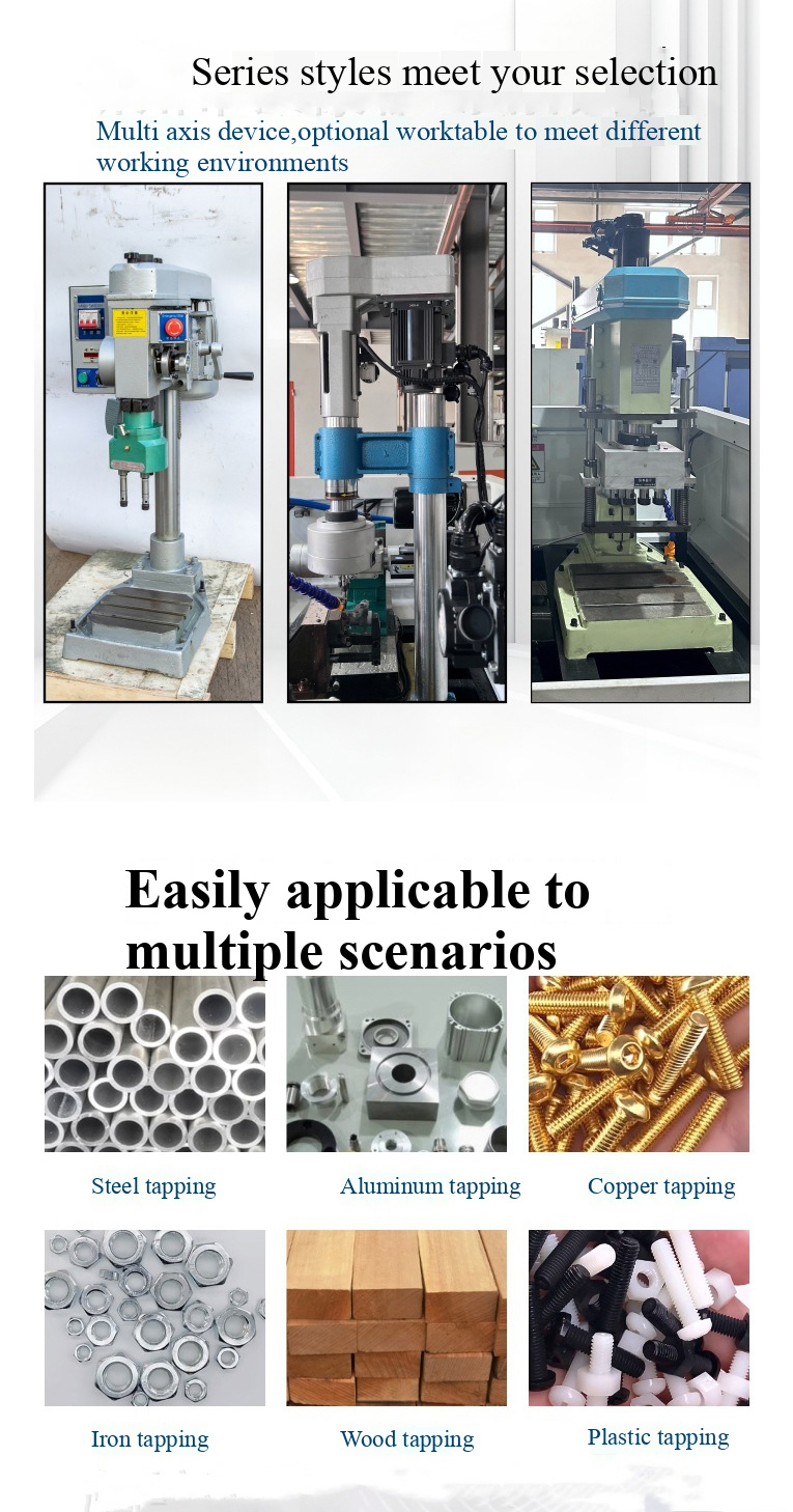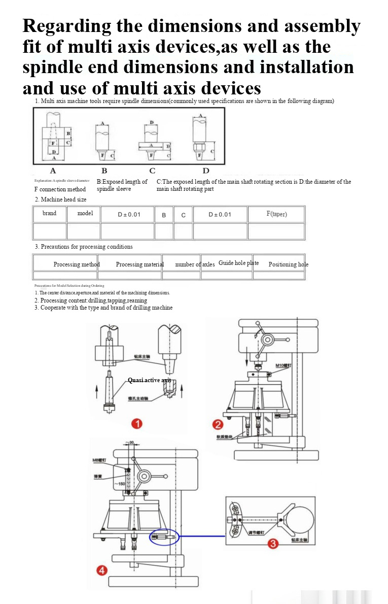 ఒక సాధారణ మల్టీ-యాక్సిస్ డ్రిల్లింగ్ మెషిన్ మరియు ఒక సాధారణ డ్రిల్లింగ్ మెషీన్ (బెంచ్ కసరత్తులు, నిలువు కసరత్తులు, రేడియల్ కసరత్తులు, డ్రిల్లింగ్ మరియు మిల్లింగ్ యంత్రాలు, ప్రత్యక్ష మోటారు కనెక్షన్లు, పవర్ హెడ్స్ మొదలైనవి వ్యవస్థాపించబడతాయి.